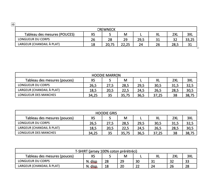 Fiez-vous au tableau des mesures.
